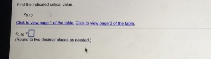 . Find the indicated critical value z010 Other questions on the subject. The value is 16. Find the indicated critical value Z010 Click to view page 1 of the table.